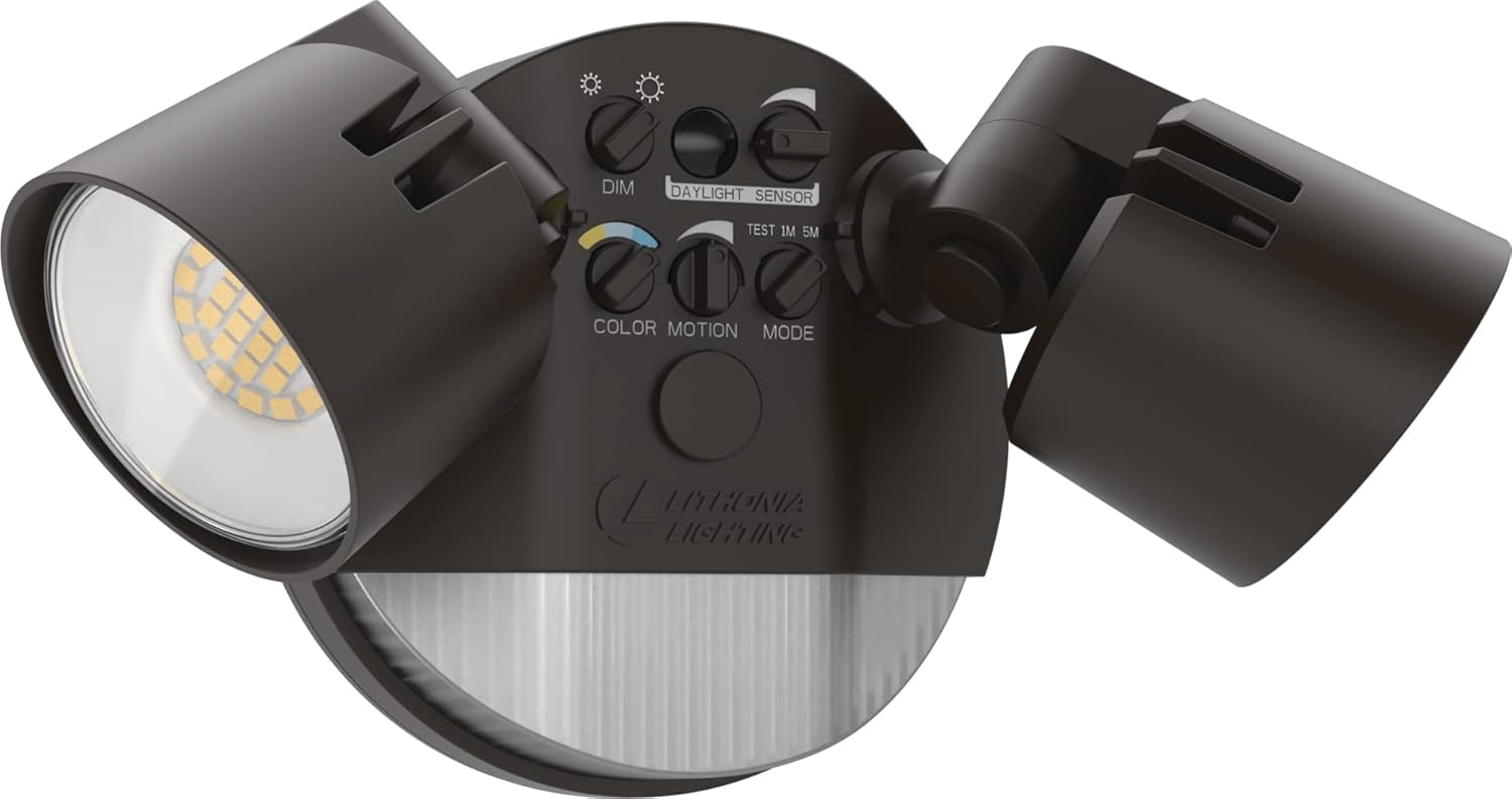 Lithonia Lighting’s HomeGuard 2-Light LED Flood Lights in dark bronze feature motion sensors, dusk-to-dawn, and adjustable lumens/CCT. With round heads, they’re ideal for patios or driveways. Energy-efficient and durable, they offer secure, customizable lighting with easy installation for enhanced outdoor safety.